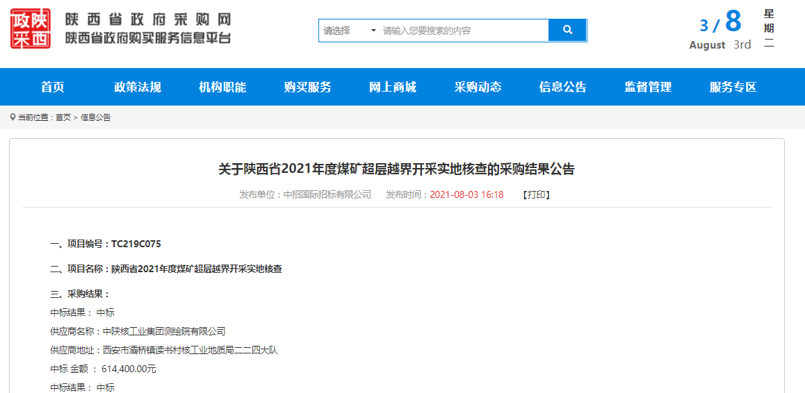 • 測(cè)繪院成功中標(biāo)陜西省2021年度煤礦超層越界開(kāi)采實(shí)地核查項(xiàng)目
